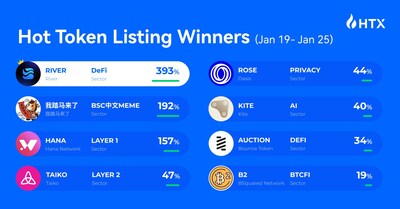 View original content to download multimedia:https://www.prnewswire.com/news-releases/htx-hot-listings-weekly-recap-jan-19-25-river-soars-393-as-multi-sector-momentum-rises-with-defi-surge-and-memecoin-breakout-302674911.html